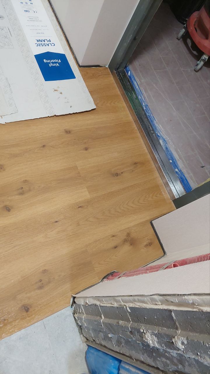 Обратите внимание на стык винила и плитки пола, идеально.